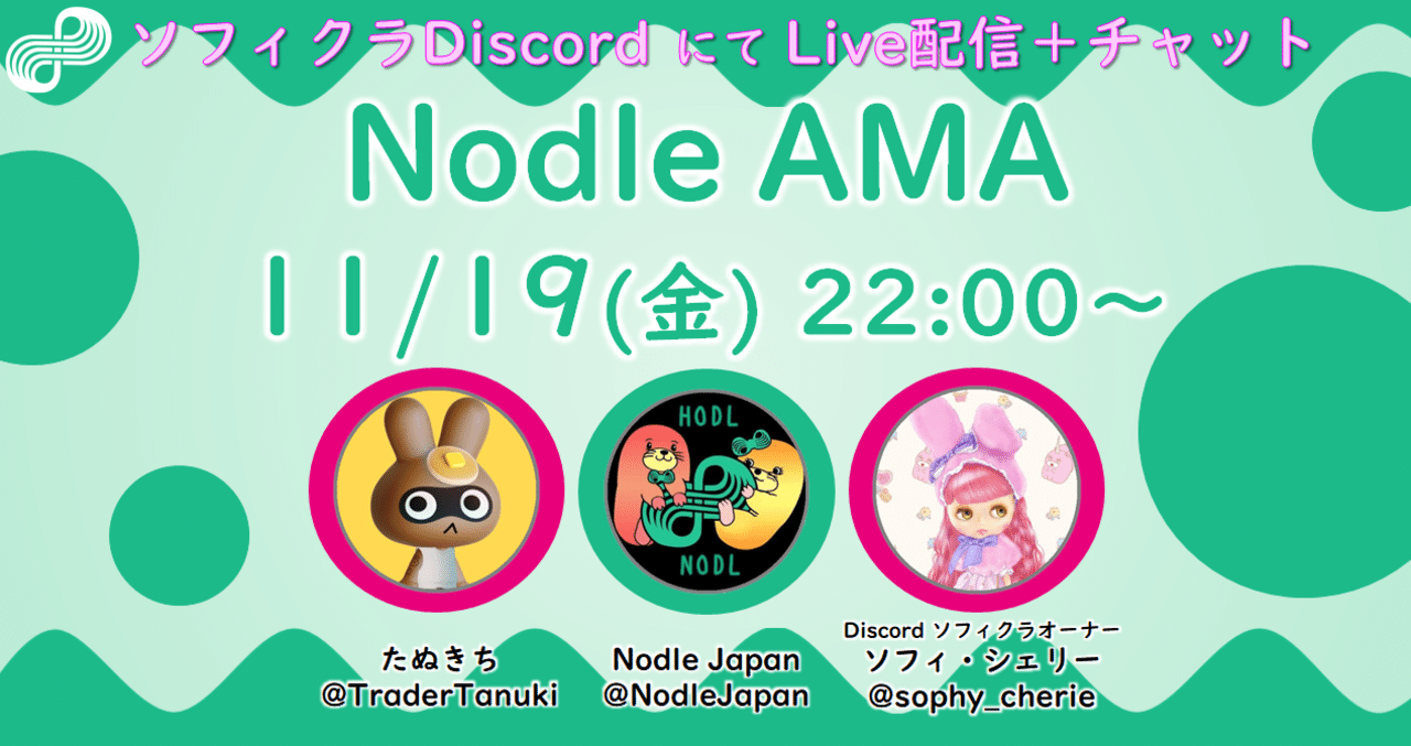 11/19にクリプト界の有名人、ソフィ・シェリーさんのDiscordチャンネル「ソフィクラ」にて、日本語でのAMA (音声配信) を実施しました。 ゲストは、NodleJapanの創設時か…