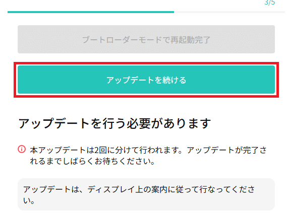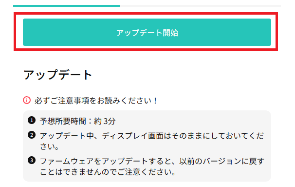 👉上記のパソコン画面に戻り、赤枠の「ファームウェアのアップデート」をクリック